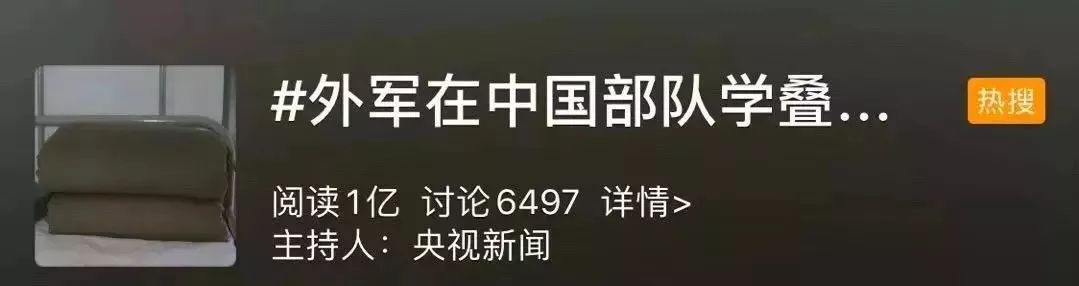 近日#外军在中国部队学叠豆腐块#登上热搜