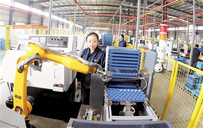 11月8日,湖北万博汽配科技有限公司(麻城)员工在机器人手臂组装车间,监测自动装配生产。该公司是研发生产汽车电喷燃油泵及总成的高新技术企业,75项实用型科研技术专利支撑优化产品转型升级,相关技术国内行业领先,赢得海外市场,今年订单生产的产品95%出口美国、巴西和伊朗等16个国家。