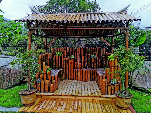 ▲村民自己设计搭建的竹亭。记者裘立华摄