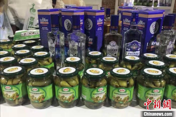 俄罗斯馆参展商丹尼尔分别拿着当地的一瓶酒和一瓶泡黄瓜向记者介绍道:“俄罗斯的冬天很冷而且漫长,为了过冬我们也喜欢制作泡菜。俄罗斯泡菜以酸味为主,最常见的是酸黄瓜,但跟四川泡菜作为下饭菜不同,俄罗斯泡菜主要是用来下酒的。俄罗斯人爱喝酒,而喝酸黄瓜汤可以解酒。”
