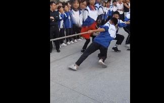 在这位大妈之后,越来越多的“隔空助威”人才被发掘出来。今年9月份,辽宁抚顺一所学校的拔河比赛上,一位老师“轰鸡式助威”也让网友忍俊不禁。