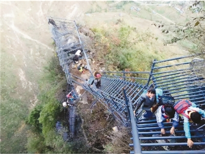 州上县上拨来100万元。但因为是悬崖峭壁,只能修钢梯,难度可想而知。