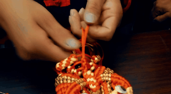 韩晓君正在编织绳结