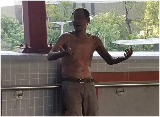 此案案发于11日下午将近1时,在香港马鞍山地区一座天桥上,李姓男子疑因不满车站被破坏而与在场的暴徒发生口角。期间,有暴徒竟然向李伯浇淋易燃液体并点火焚烧,导致李姓男子全身大面积严重烧伤,一度生命危殆。