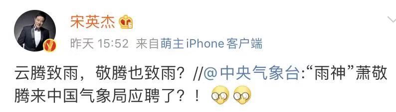 对于“雨神”的称号,萧敬腾不排斥,但是不想过度放大。早年采访时,曾明令禁止媒体问关于“雨神”的问题,刻意回避这件事。