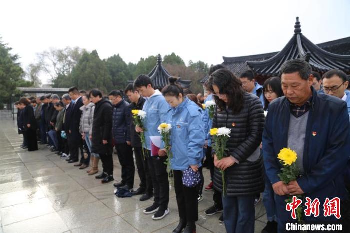 图为众人手捧白菊向万忠墓献花。 和盛楠 摄