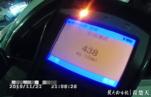 11月21日晚上9时许,武昌交警在小东门路口查酒驾,民警欧小龙检查一辆白色轿车闻到一股酒气,对驾驶员朱某进行吹气检测,不料,测试仪显示的血液酒精含量竟然高达438mg/100ml,该数值创下武昌区交通大队查酒驾的最高记录。