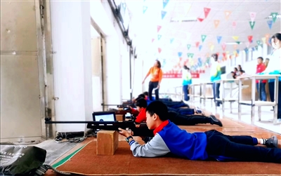据介绍,黄石九中是湖北省射击传统学校。学校每年在七年级学生中进行理论教学和实弹射击操作普训,选拔有潜力的学生组建校队,不仅参与学校的课余训练,还参与黄石市射击训练中心组织的夏令营、冬训营,优秀选手直接输送至湖北省射击队。2017年,黄石九中学生步兵、蔡林斌两位同学在全国U17射击锦标赛男子10米气手枪决赛中,分别夺得男子第一名和第三名的好成绩。