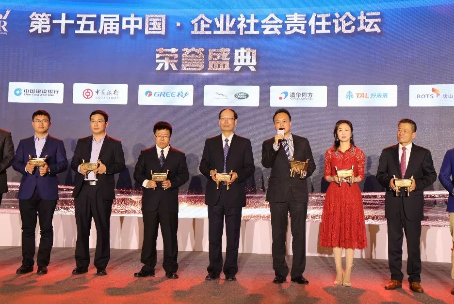 好未来集团执行总裁万怡挺(中)出席“第十五届中国•企业社会责任论坛”并发言
