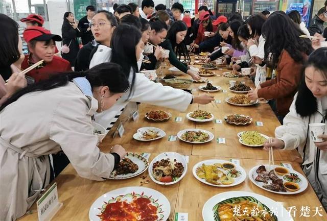 楚天都市报11月26日讯(记者 张屏 通讯员 王铭康 刘明杨)菊花鱼、樱花小径、红旗飘飘......昨日下午,武昌理工学院举行烹饪大赛,近百名师生于学校食堂同台竞技,他们端出的一道道传统菜、创新菜,迅速被评委和围观群众吃光光。