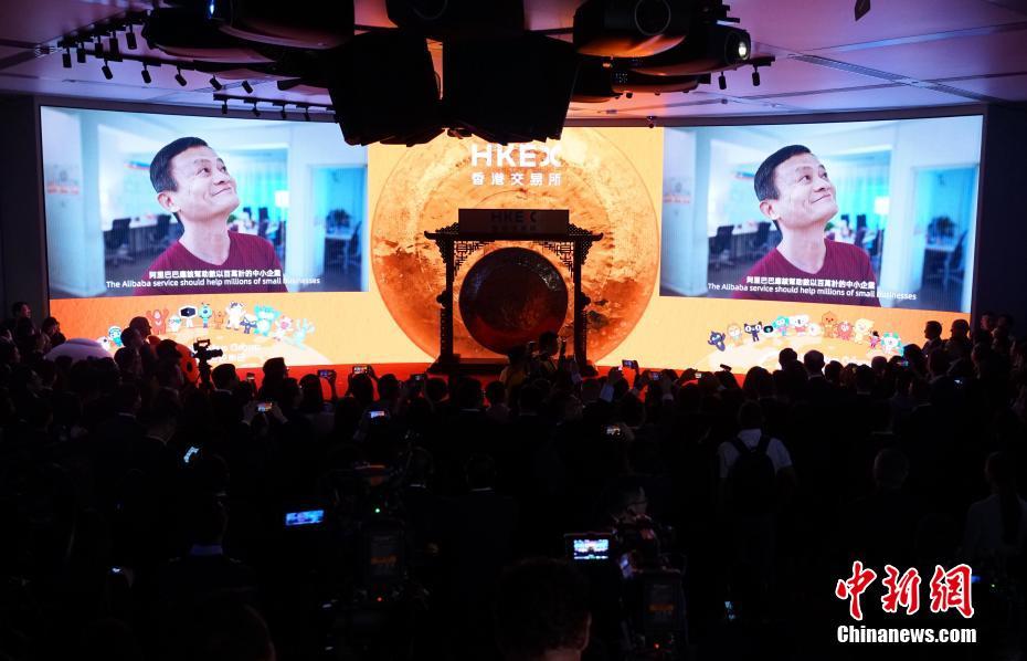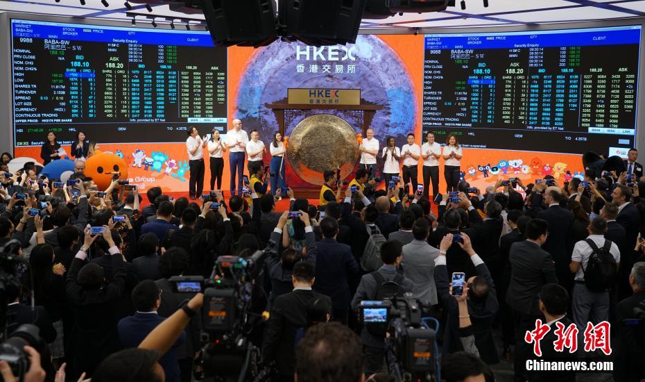 - 11月26日上午,阿里巴巴-SW(9988.HK)在香港交易所主板挂牌上市。阿里巴巴以187港元开盘,比发行价176港元上涨6.25%,市值4万亿港元,成为全球第八大上市公司。阿里巴巴董事局主席兼首席执行官张勇致辞时表示,今年是阿里成立20周年,在20岁的生日之际完成了重要的里程碑,就是回家,回香港上市。他感谢20年来客户的支持和陪伴,又感谢香港、感谢港交所,让5年前错过的遗憾得以实现。张勇的致辞赢得满堂彩。 中新社记者 张炜 摄