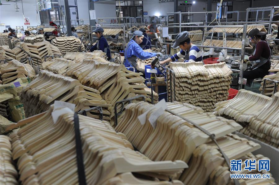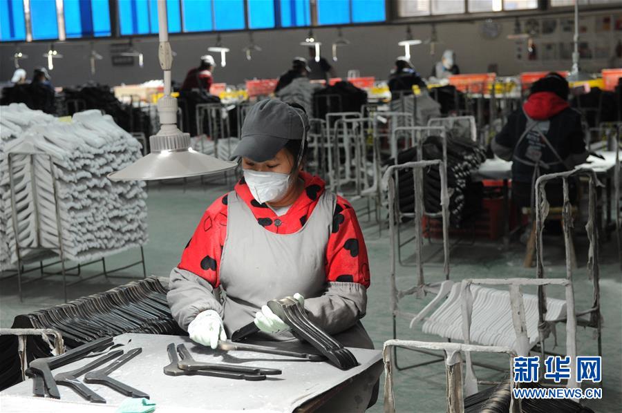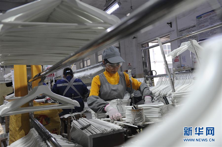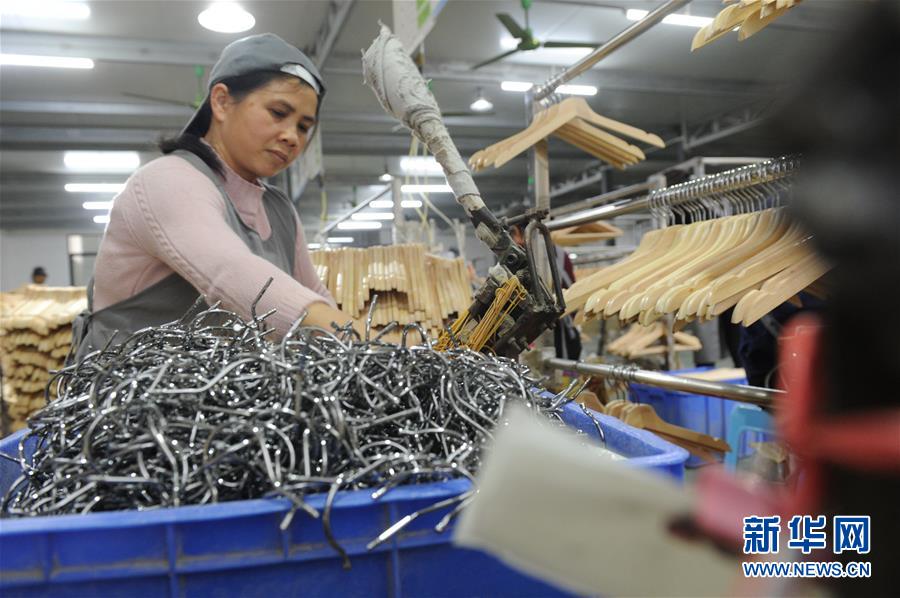 11月27日,在广西荔浦市的一家衣架生产企业组装车间里,工人在组装衣架。新华社记者 冯为民 摄