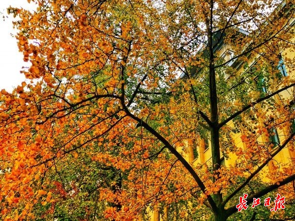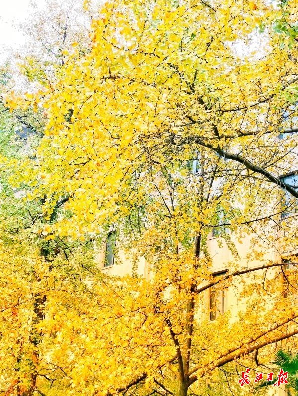 长江网11月28日讯 11月28日,步入初冬的武汉理工大学余家头校区美景如画,着色金黄的梧桐树和银杏树,吸引不少师生来打卡。(记者杨涛 摄)