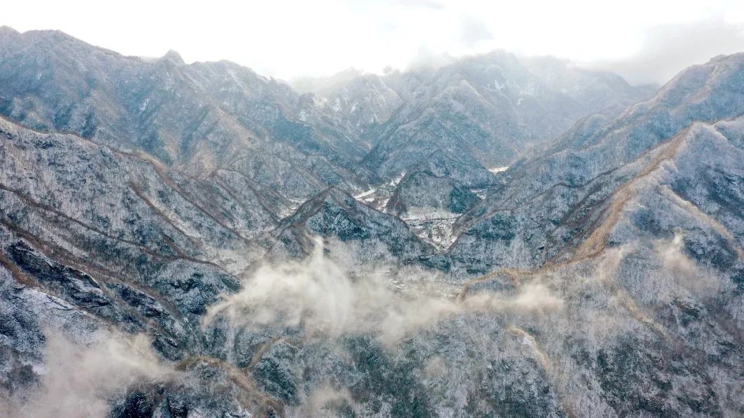 11月25日,秦岭雪后初霁,重重山峦在白雪覆盖下宛若仙境。新华社记者 刘潇 摄