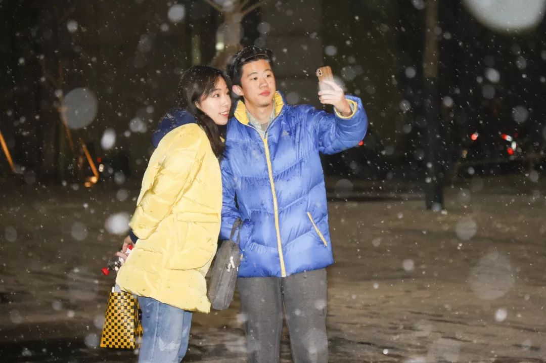 北京一校园里,情侣漫步分享雪景。(摄影:田心若)