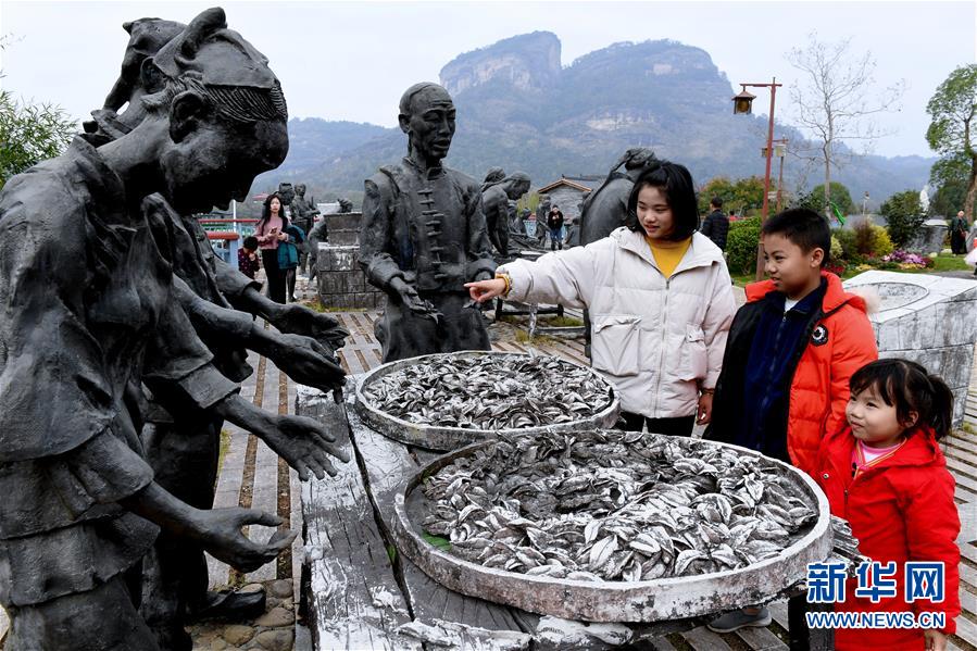 12月1日,游客在武夷山大红袍体验中心参观制茶雕塑群。 当日,福建武夷山大红袍体验中心开园接待游客。武夷山大红袍体验中心对原中华武夷茶博园进行全面改造提升,打造成集武夷茶文化展示、观赏陈列、互动体验、茶艺交流等于一体的全新文化旅游项目, 是当地市民、外地游客了解武夷山茶文化的综合性园区。 新华社记者 张国俊 摄