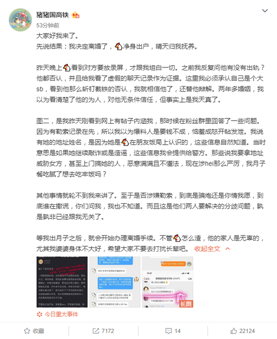 网易娱乐12月3日报道 12月3日,网红“lu一丝”在微博宣布将与老公葛成离婚,男方净身出户,自己将独立抚养女儿。她表示,老公葛成在自己怀孕期间出轨,自己本不相信还替老公说话,女儿满月后就与男方离婚。