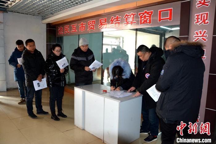 东宁市民在边民互市贸易结算窗口办理业务。 訾立民 摄