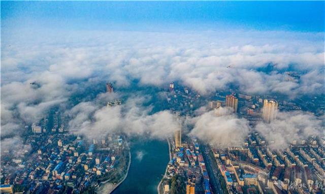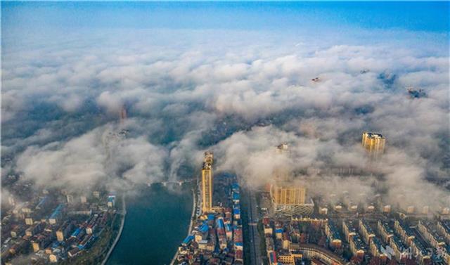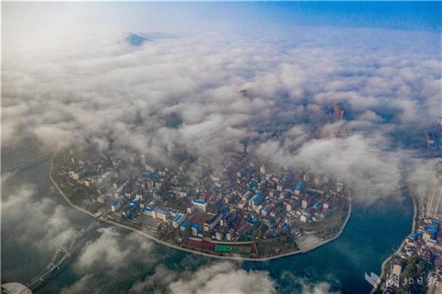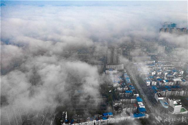 12月2日清晨,赤壁市城区出现大雾,9点30分许,大雾逐渐散去,无人机从高空俯瞰城区,雾漫漫,景色怡人。