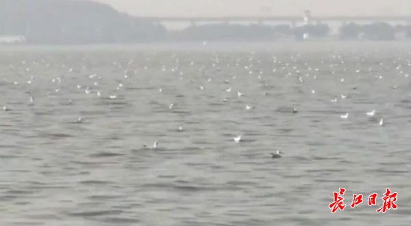 市民李先生说,12月2日早晨,他从武汉市藏龙岛藏龙大桥上经过时,看到路边的汤逊湖中,聚集着密密麻麻的白色野鸟,数量有一两千只。它们有的正在湖水中觅食,有的在空中飞舞,“它们均身披白色羽毛,长有黑色尾巴,其嘴巴与脚则是红色的”。它们长得非常像海鸥。