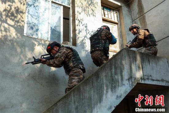 近日,武警湖北总队鄂东片区特战分队第四季度“魔鬼周”极限训练拉开序幕。本次训练紧贴实战,设置按图行进、山地追逃、河道搜索、爆炸物搜索、红蓝对抗等课目,特战队员辗转工厂山林,穿越水坝沼泽,在复杂地形和环境中挑战极限,锻造过硬本领。图为厂区战斗搜索训练。涂远洋 摄