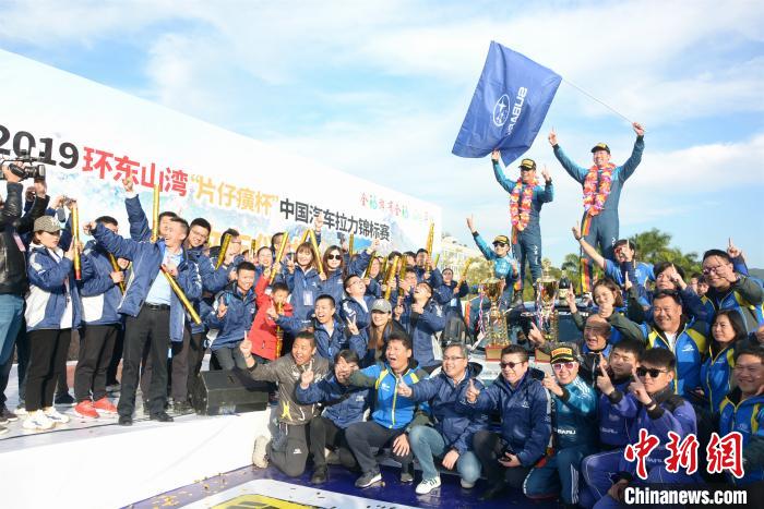 中新网漳州12月9日电 (龚雯)历经5站,2019中国汽车拉力锦标赛(以下简称CRC)8日在福建漳州东山收官,并于当晚举行年度颁奖仪式。来自斯巴鲁中国魔力拉力车队的车手范高翔蝉联年度总冠军,同车队林德伟、张国宇分获亚、季军,该车队一并斩获联合会杯、厂商杯及国家四驱组队赛杯第一名。