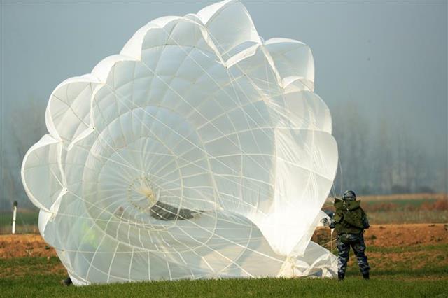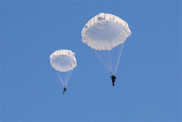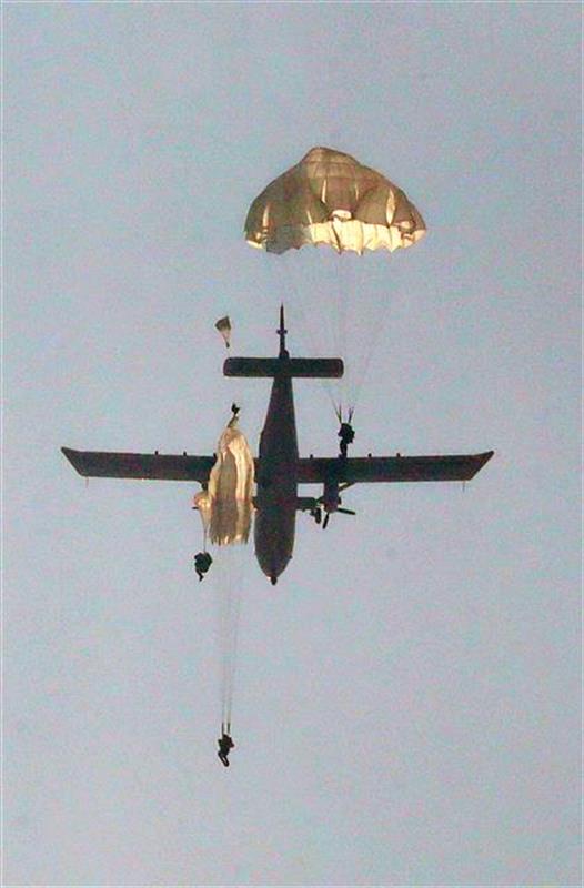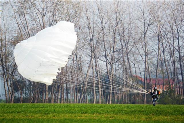 伞兵落地瞬间。