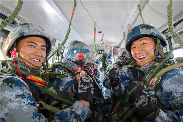 为了顺利完成首跳任务,前期这批新兵先后通过4次严格考核,平均每天弯腰3个小时,经受“三肿三消”的磨砺……此刻,即将翱翔在蓝天白云间,他们的心情格外激动。