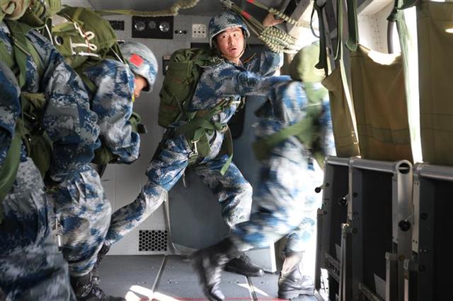 “你们是谁?”“中国空降兵!”“你们要做什么?”“安全跳伞、快乐跳伞!”“加油!加油!加油!”登机前,各架次投放员采取一问一答的方式,和新兵们互动加油。机场指挥员、该旅政委牛海欣介绍,背上降落伞等待飞机是新兵最紧张的时候,这时要不停地组织活动为新战士加油鼓劲,帮助他们消除紧张情绪,信心满满去跳伞。
