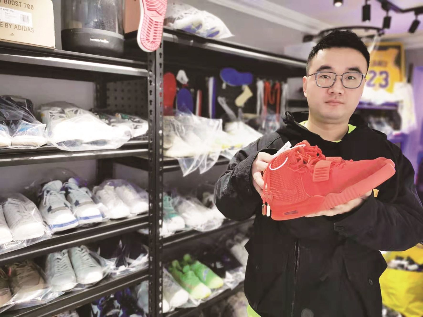 在黎黄陂路一家名为大象洗鞋的球鞋护理店内,店主徐帆正忙着招呼顾客。