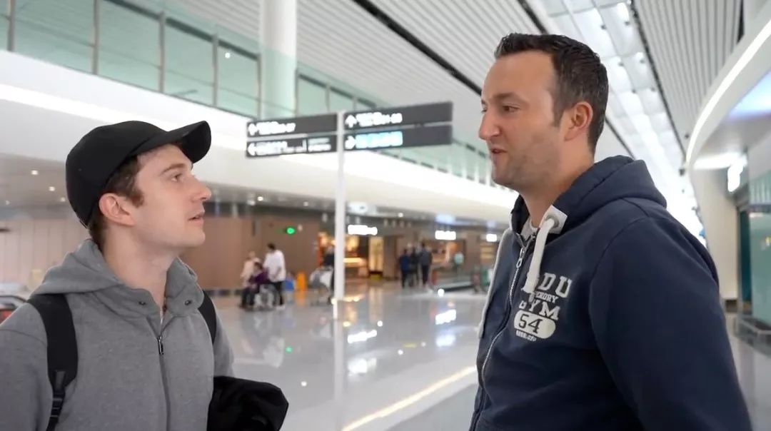 郭杰瑞还随机采访了另一位候机的外国朋友,请他讲讲觉得机场怎么样。对方表示非常喜欢大兴机场的设计,简单便捷,只有一座航站楼,不需要坐接驳车。