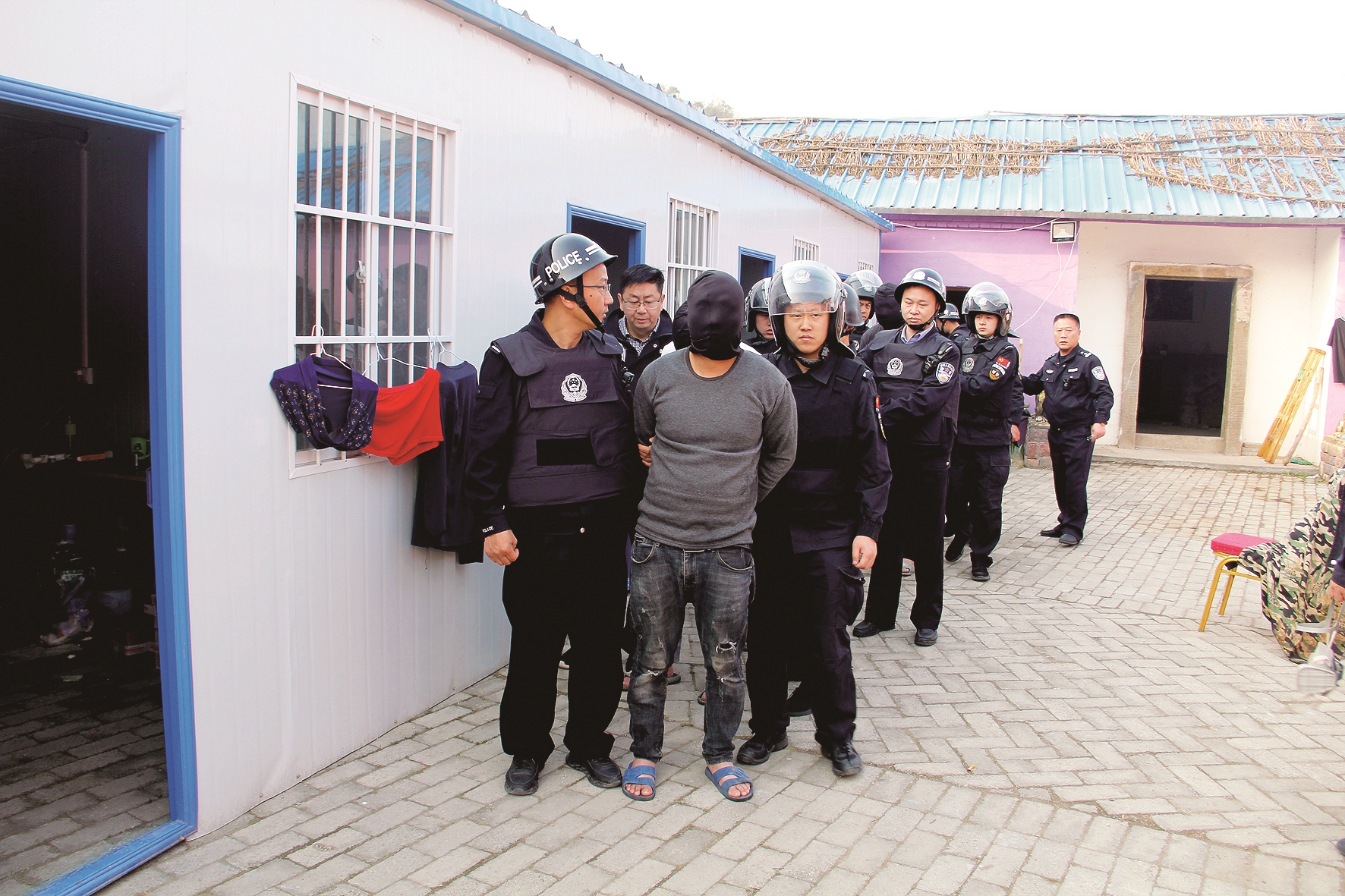 在武汉江岸区后湖大道某小区内,民警捣毁以刘某为首的贩卖毒品窝点1处,现场抓获刘某等5名犯罪嫌疑人,查获疑似毒品“氯胺酮(俗称K粉)”1.371千克,收缴毒资6万余元;在大悟“紫海庄园”现场抓获制毒团伙人员9名,收缴制毒原材料6.9吨,扣押大量制毒设备和作案车辆5辆,以及刘某为了隐蔽真实身份而购买的假警服和警官证。