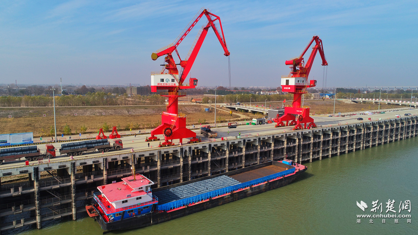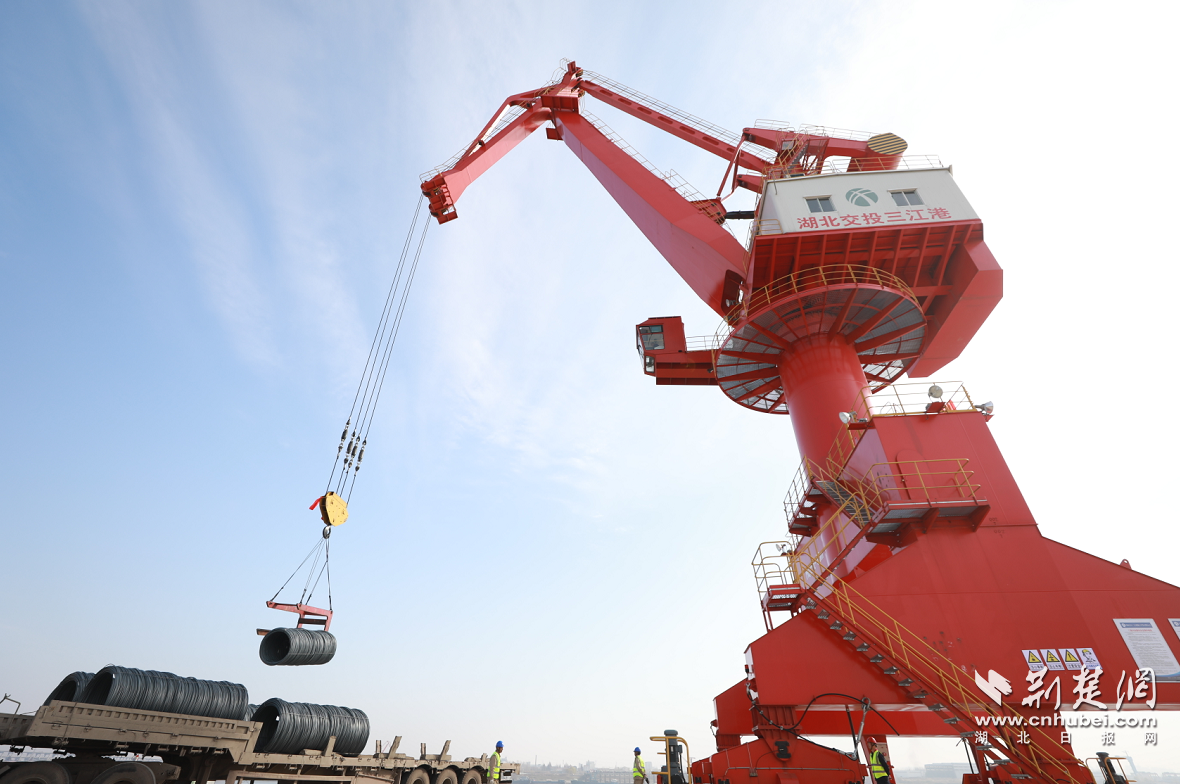 荆楚网客户端—荆楚网讯(记者徐浩 通讯员孙宇峰)12月12日,随着第一单1050吨盘螺钢被依次起吊上船,运往长沙新港,标志着由湖北交投集团三江港公司投资建设的武汉新港三江港综合码头一期工程正式具备生产条件,长江“黄金水道”将再添一重要物流枢纽港口。
