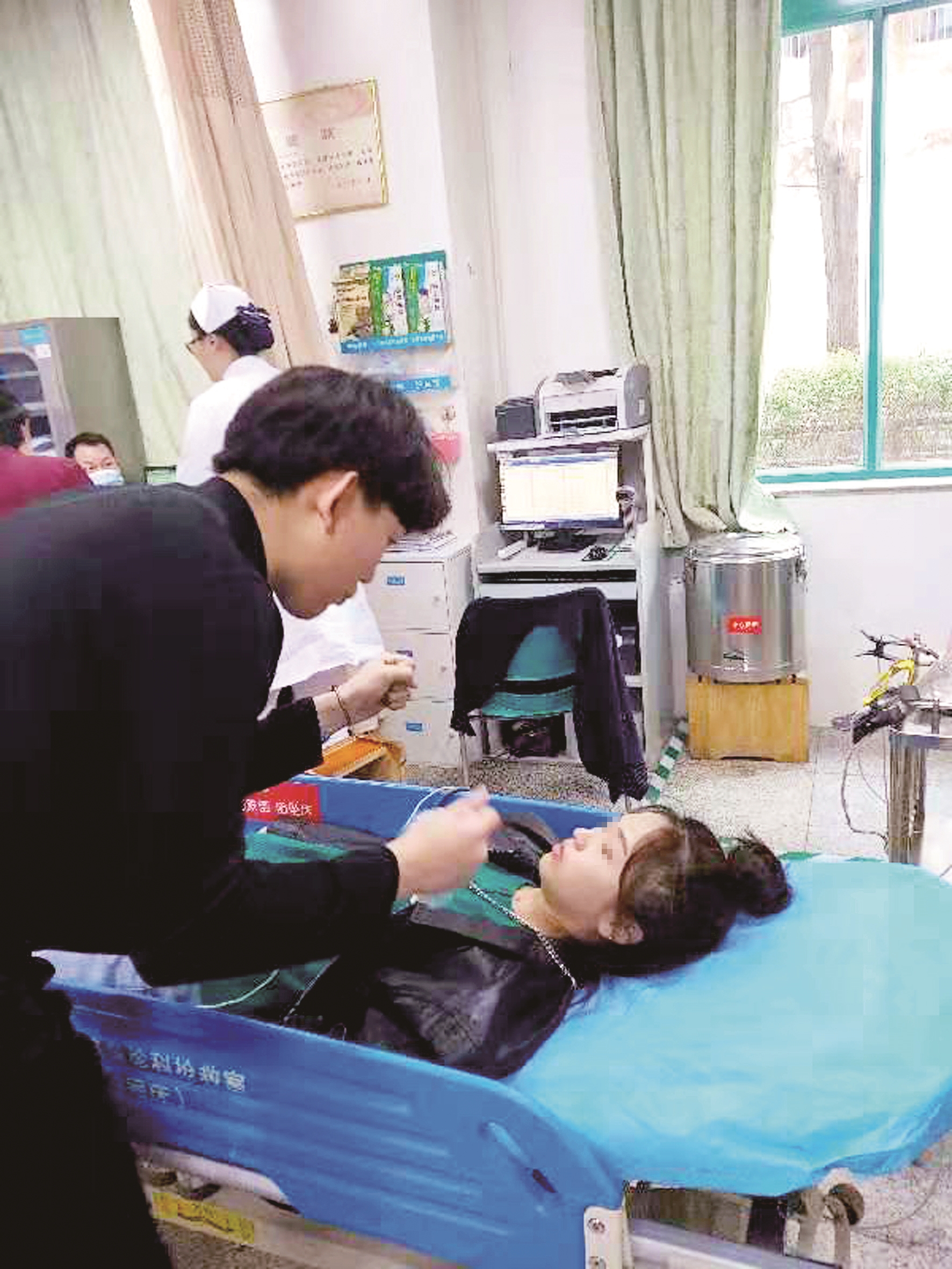 “这个女孩可能需要心肺复苏!”作为一名医护人员,郭文文立马穿过人群冲上前,检查女孩的各项生命体征。女孩此时已经处于昏迷状态,郭文文在女孩子鼻下探了探,已基本感觉不到呼吸,一摸颈动脉,脉搏也十分微弱,嘴里还吐着白沫,如不及时处理可能会引起窒息。见情况非常紧急,郭文文用纸巾轻轻擦拭掉女孩嘴里的分泌物,进行了系列准备工作后,开始为女孩做心肺复苏。