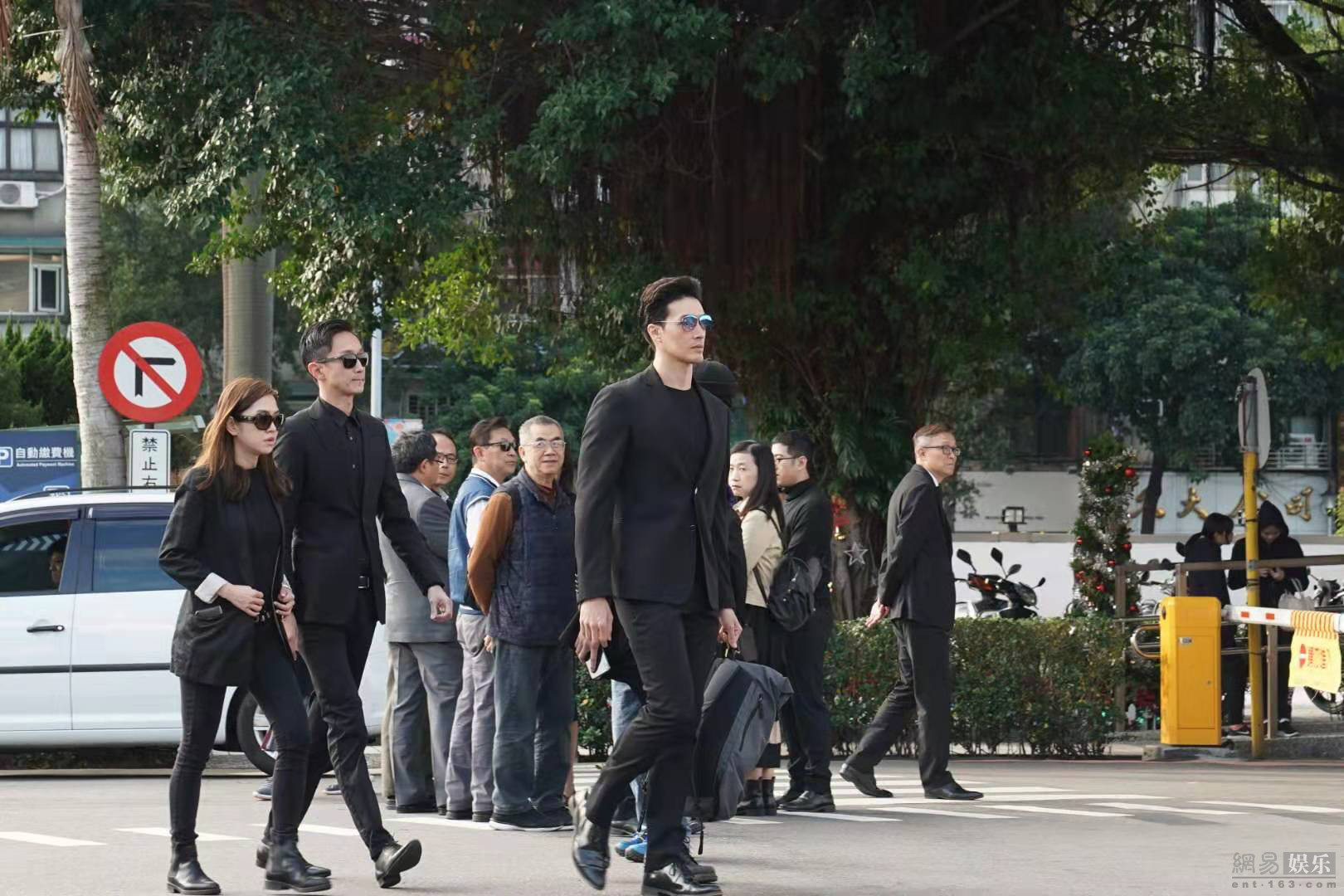 2019年12月15日,台北市,众多亲友粉丝现身台北第一殡仪馆参加“放心高飞 以翔追思会”。陈建州、王阳明、连凯、经纪人王钧、汪东城、浙江卫视代表及毛加恩夫妇等人齐穿黑衣现身,墨镜遮面神情肃穆。