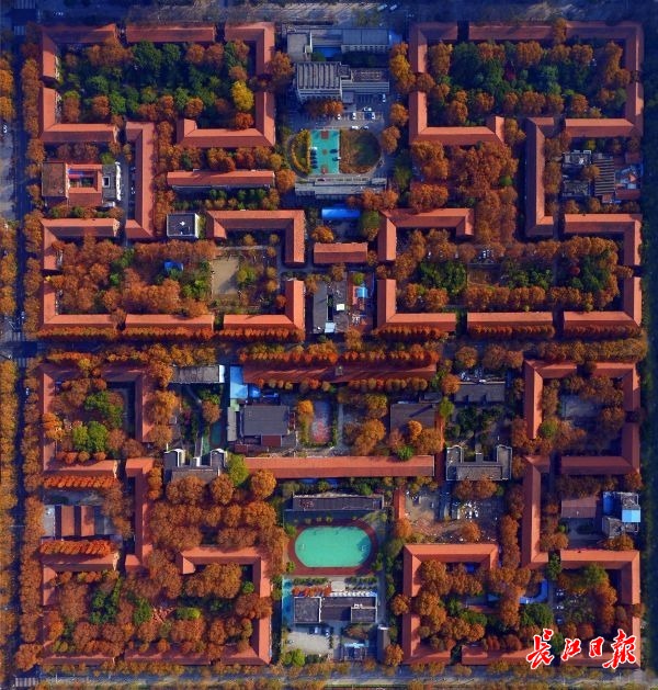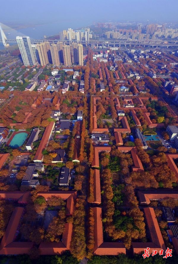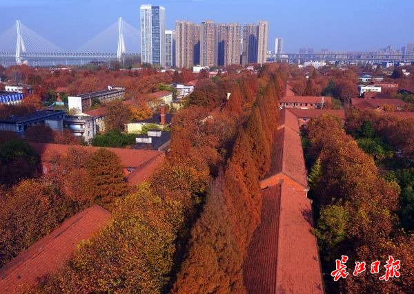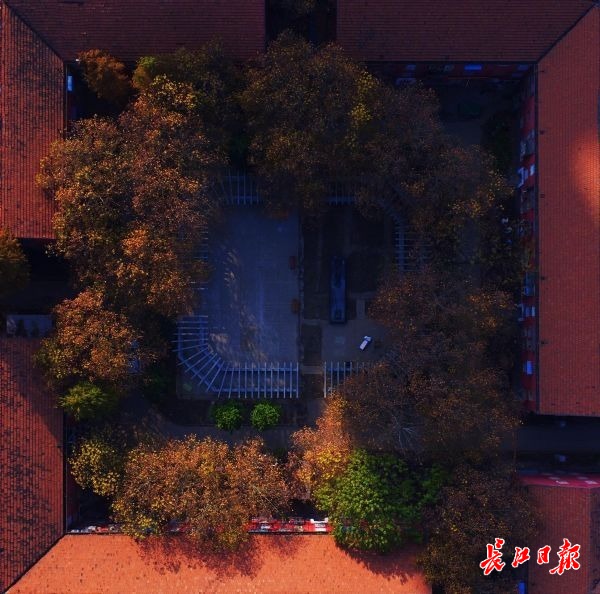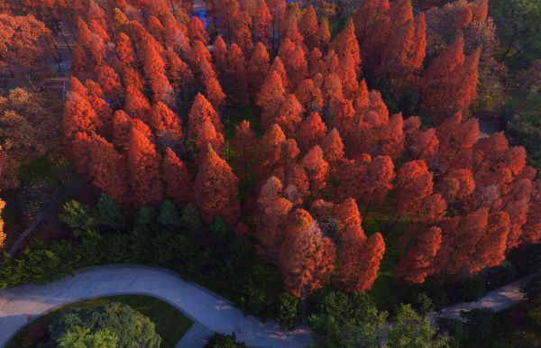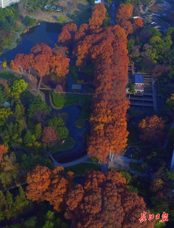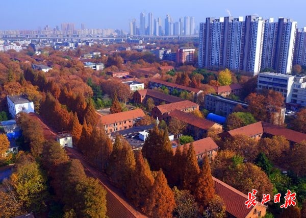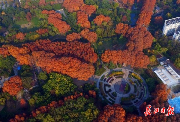 长江网12月15日讯 据气象部门预报,小雨降温即将登场,武汉天气进入湿冷模式。趁着双休日短暂出现的好天气,长江日报-长江网记者用无人机航拍了解放公园和青山区红钢城的红房子。一个是公园,一个是街区,但是它们都不约而同被高大的法桐和杉树用非常接近的橙红色装扮得火热浓烈,形成别样的风光。