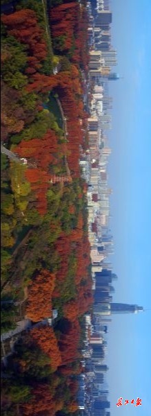 众多高大的法桐、水杉、池杉在解放公园“抹”出一片片浓烈的橙红色。记者李永刚 摄