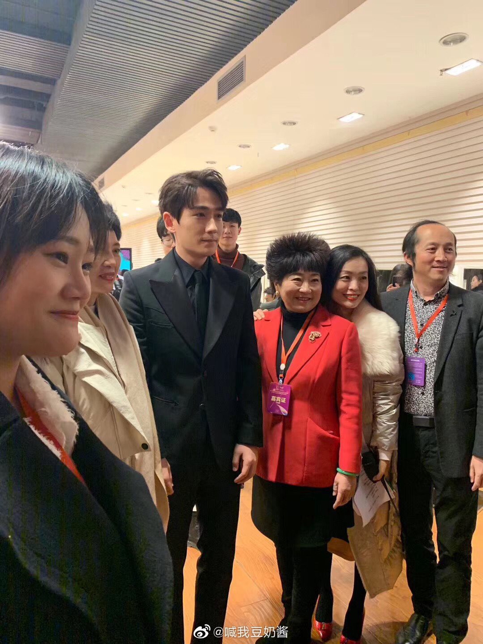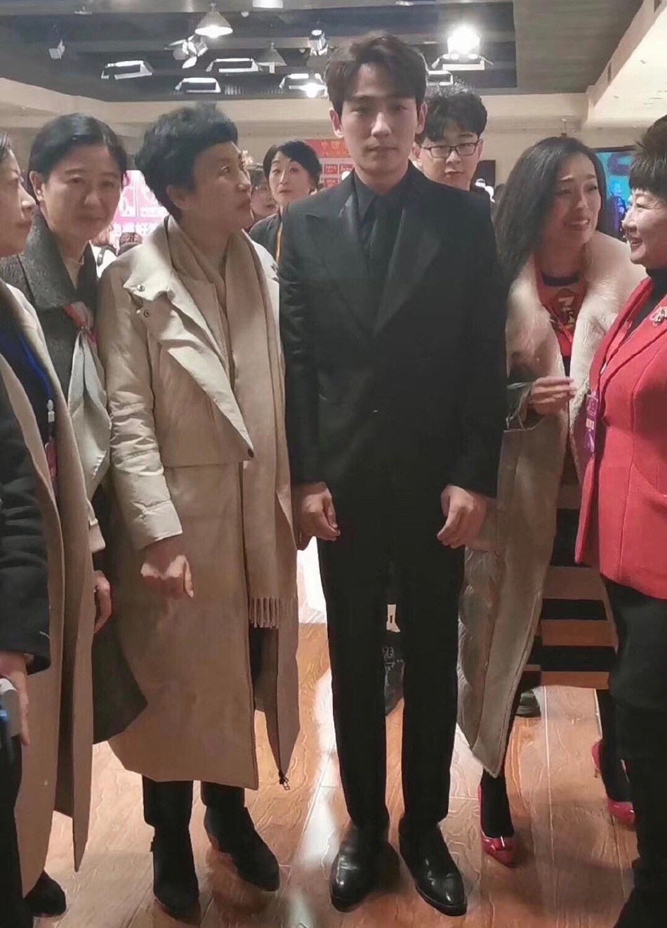 朱一龙与阿姨合影站定不动 表情呆萌