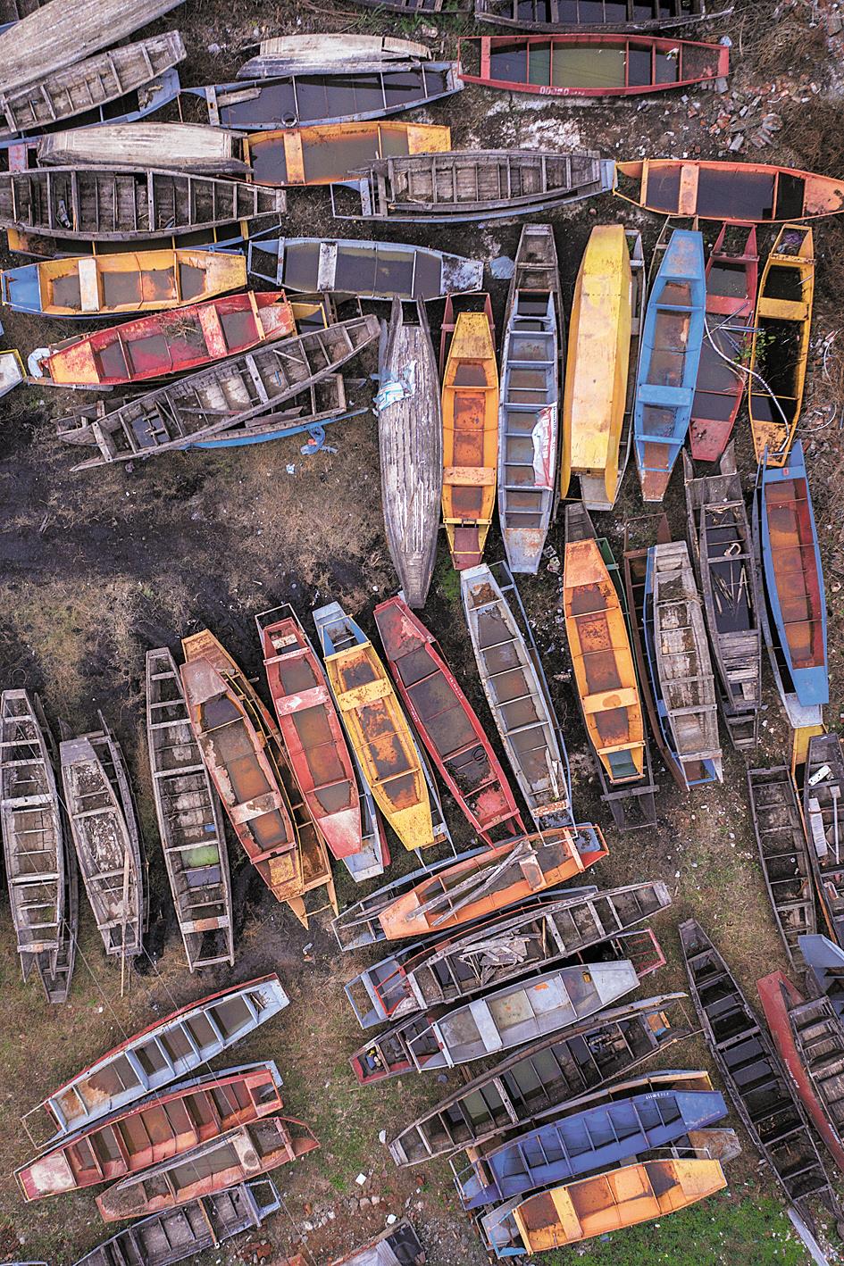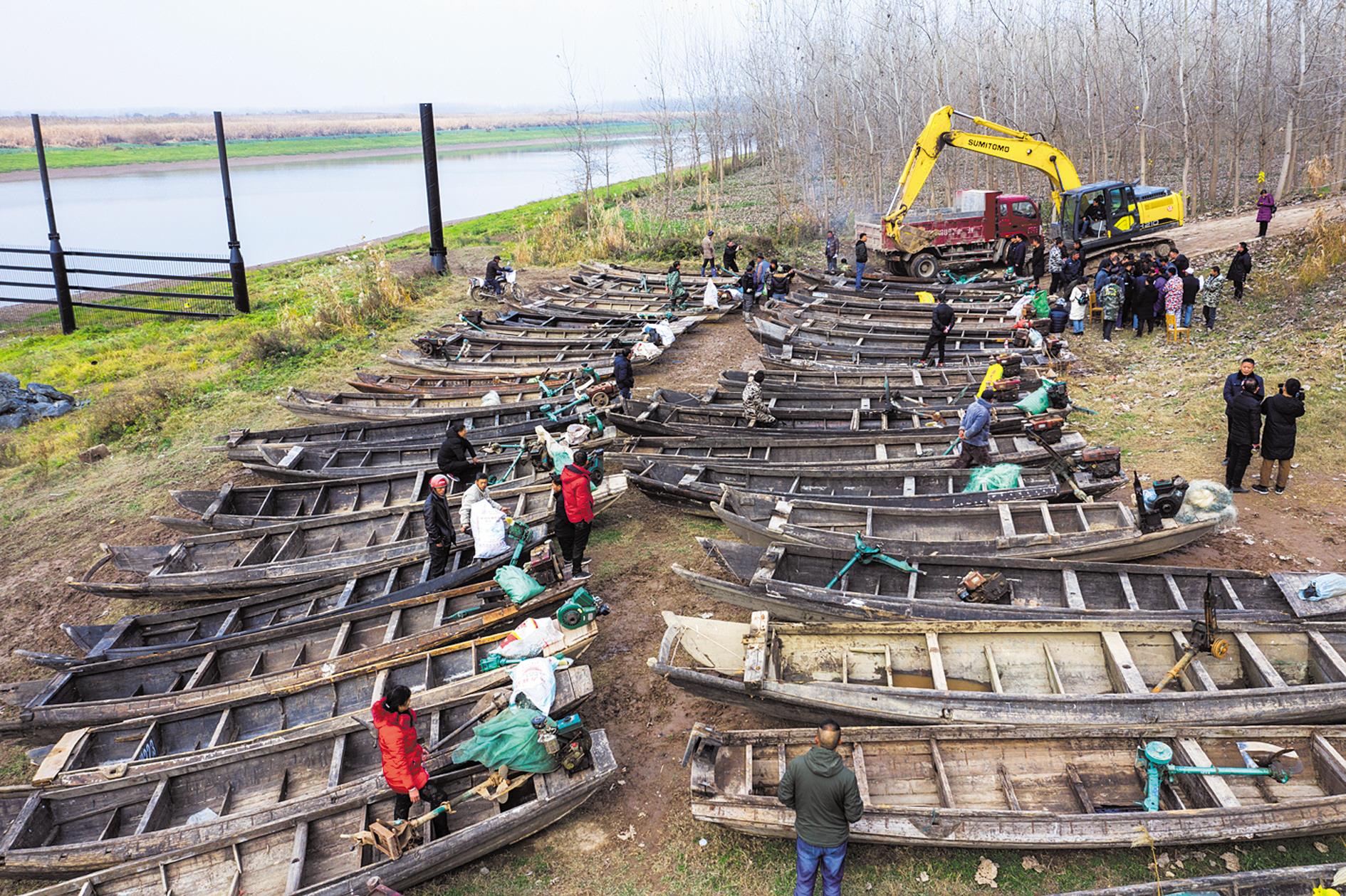 12月19日,洪湖市龙口镇80多艘渔船回收上岸并被现场拆解。