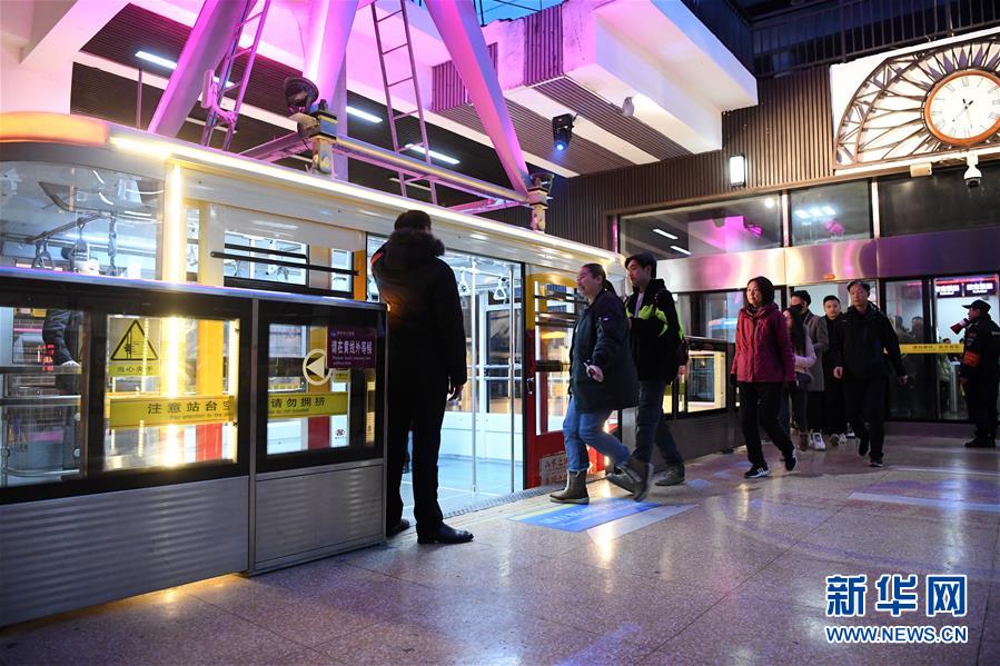 12月23日,前来体验的游客排队进入索道轿厢。新华社记者 唐奕 摄