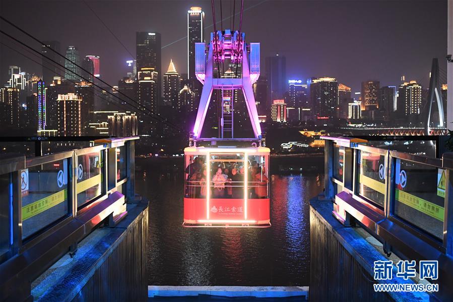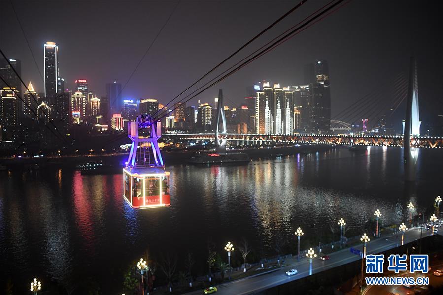 12月23日,“长江索道”在重庆夜空中运行。新华社记者 唐奕 摄