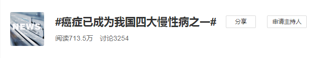 《2019全国癌症统计报告》显示,中国每年新发癌症病例约392.9万,死亡人数约233.8万,总体癌症发病率平均每年上升3.9%左右,发病率及死亡率呈现逐年上升趋势。“癌症已成为我国四大慢性病之一”这一话题在微博上引来700多万阅读量,也再次把给全球医疗带来巨大负担的癌症推到大众面前。