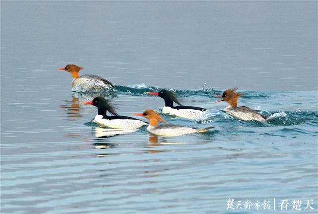 楚天都市报12月24日讯(记者高伟 通讯员董玉清)24日,荆门爱鸟会鸟类观察员在漳河观鸟表明,今年冬季,从北方迁徙漳河栖息越冬的中华秋沙鸭有增无减,其数量已超过去年达到200余只以上,占全球分布仅2000只中华秋沙鸭的十分之一强,漳河已成为“国宝”中华秋沙鸭重要的越冬栖息地。