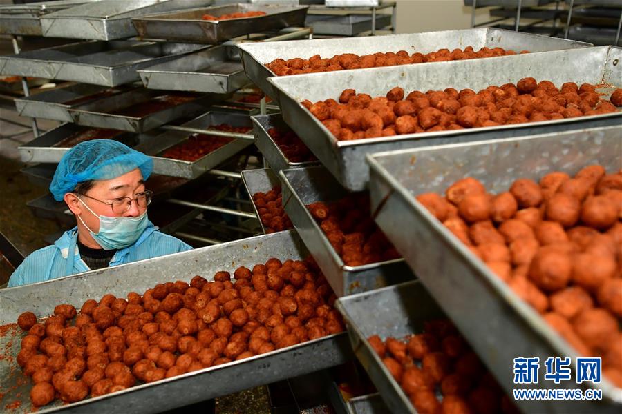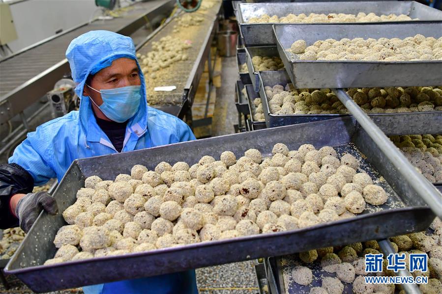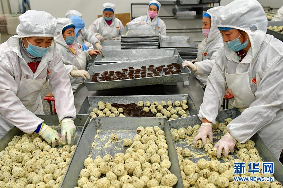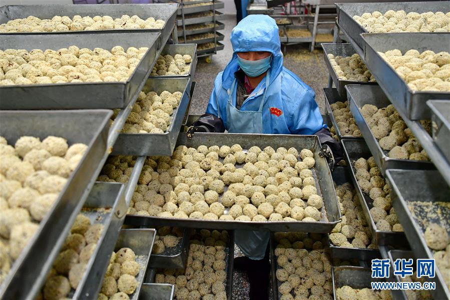 12月25日,闻喜县一家煮饼生产企业的员工在整理加工好的煮饼馅。 新年临近,山西省运城市闻喜县的食品企业加紧生产煮饼,以保障节日市场需求。闻喜煮饼是一种以面粉、蜂蜜、芝麻、糖为原料,经过十几道工序制作而成的传统糕点,口感酥绵香甜,深受当地民众喜爱。 新华社记者曹阳摄