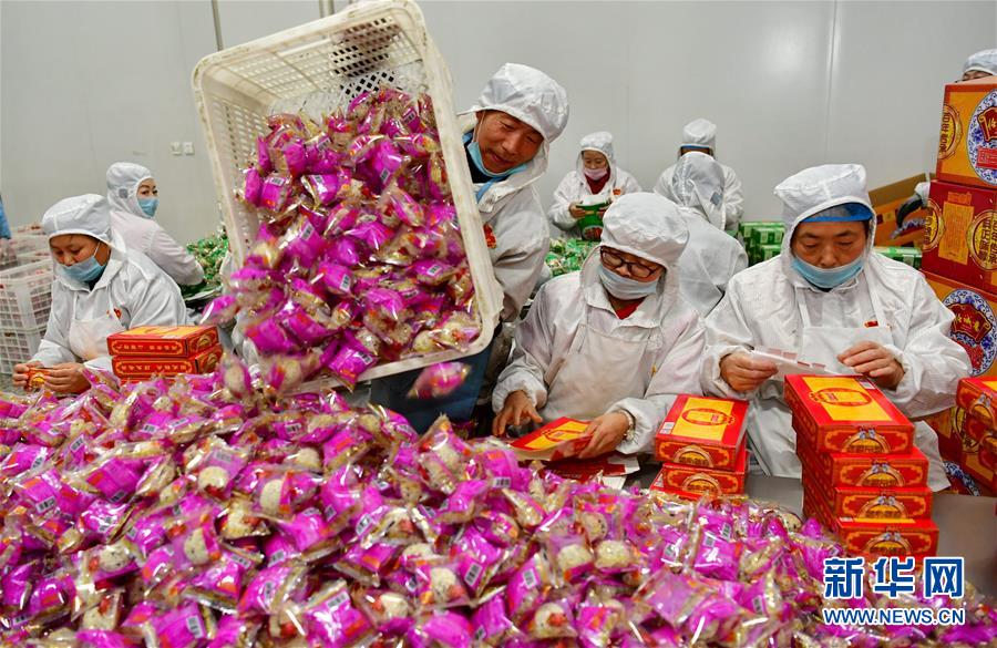 12月25日,闻喜县一家煮饼生产企业的员工在包装煮饼。 新年临近,山西省运城市闻喜县的食品企业加紧生产煮饼,以保障节日市场需求。闻喜煮饼是一种以面粉、蜂蜜、芝麻、糖为原料,经过十几道工序制作而成的传统糕点,口感酥绵香甜,深受当地民众喜爱。 新华社记者曹阳摄