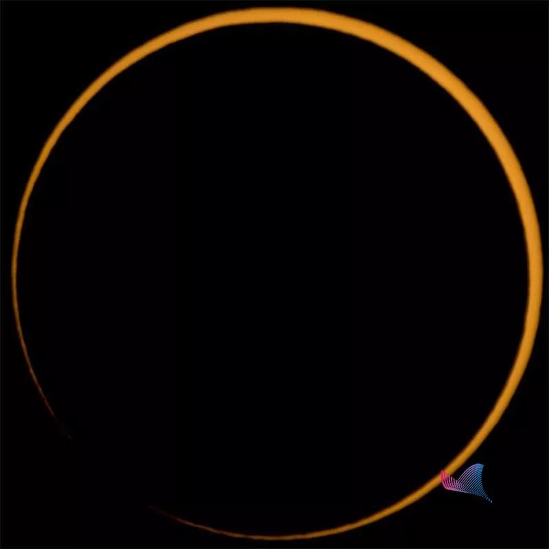 简单来讲,就是此时月球离地球稍微远了一点,不能完全挡住太阳,把太阳的“边”给露出来了。