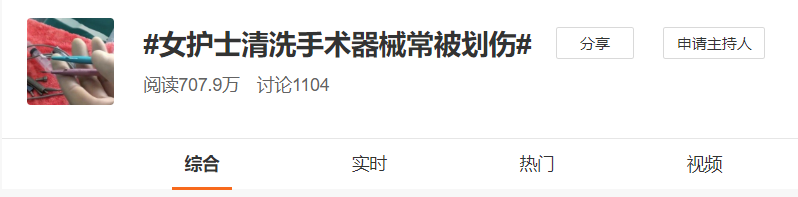 昨天,#女护士清洗手术器械常被划伤#话题登上微博热搜。