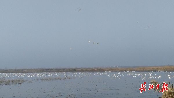 黄雄与姚波都是武汉市观鸟协会会员。他们告诉长江日报-长江网记者,当天上午,天气晴好,他们与协会的另外几位会员,到上涉湖湿地公园调查鸟类的分布状况,看到有1000多只小天鹅抱团在上涉湖中过冬,“它们有的在水中悠闲游动,有的在天空自由飞翔,场面极其壮观”。