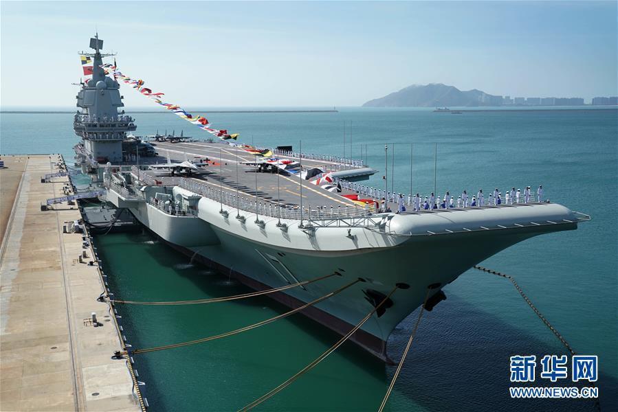 - 12月17日,我国第一艘国产航空母舰山东舰在海南三亚某军港交付海军。经中央军委批准,我国第一艘国产航母命名为“中国人民解放军海军山东舰”,舷号为“17”。 新华社记者 李刚 摄