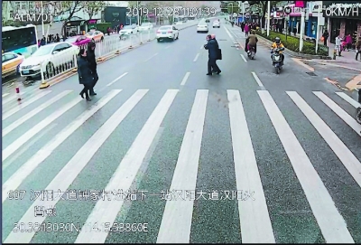 车载监控视频显示,12月28日11时01分30秒,武汉公交607路37岁的女司机曾燕,驾驶着549号车快到汉阳大道钟家村公交车站时,在附近一处斑马线上停车礼让行人。正在这时,车前方一位年约70岁的盲人老大爷站在斑马线外,手拄着拐杖想过马路,但显得有些犹豫不决,一时不知所措。